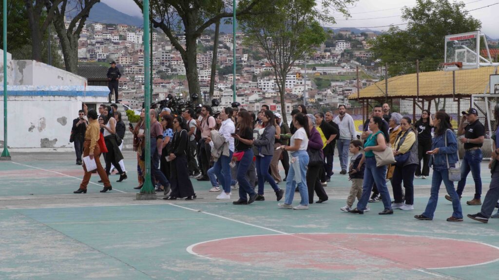 El audio recorrido y performance urbana dirigida por Paula Aros se presentó en el Festival Internacional de Artes Vivas de Loja (FIAVL 2025), en una versión adaptada al contexto local y contó con la participación de niñas y niños de la ciudad ecuatoriana.
